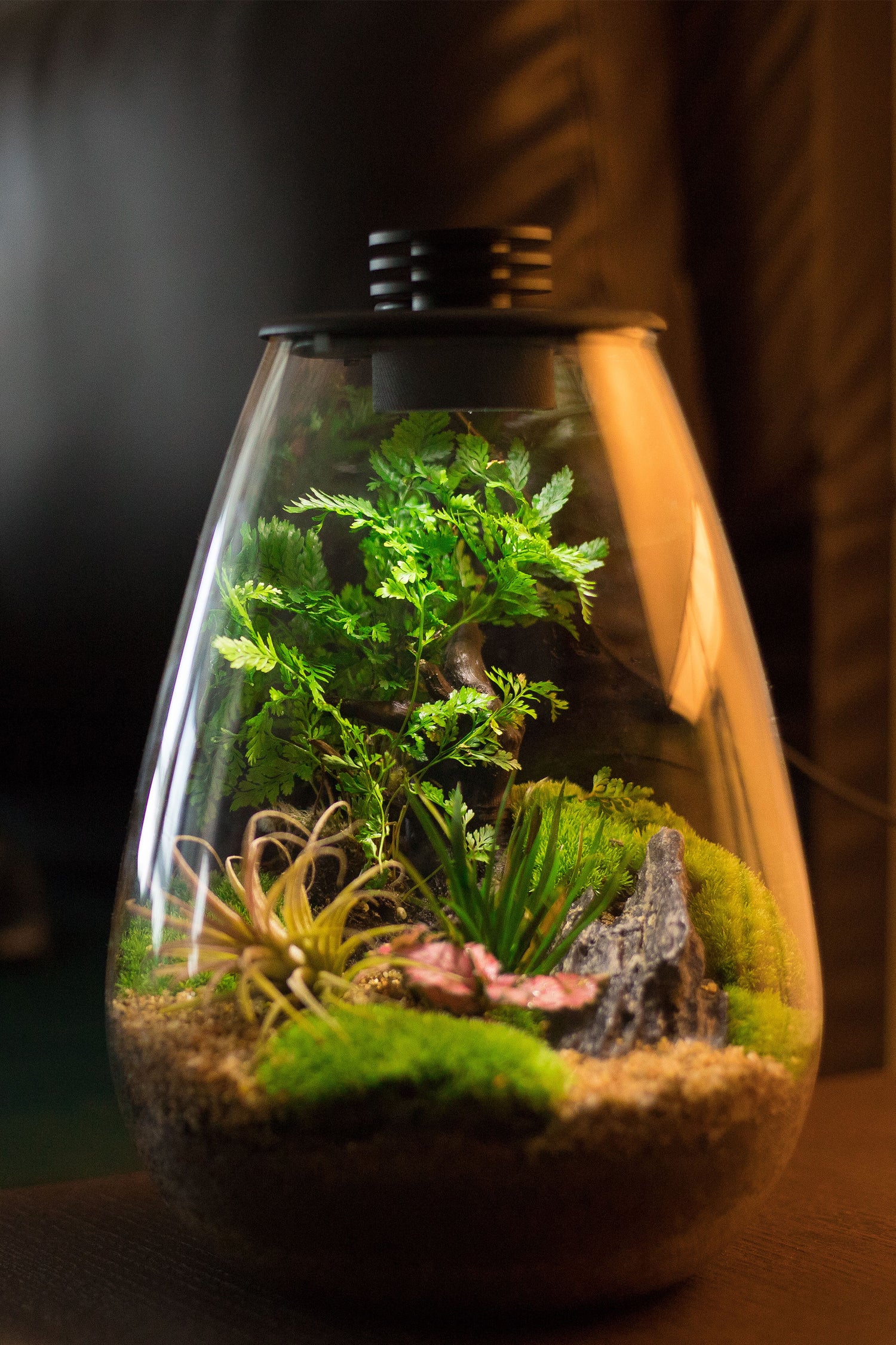 照明一体型のテラリウム容器で、あなたの作品にスポットライトを当てて最高の演出を。