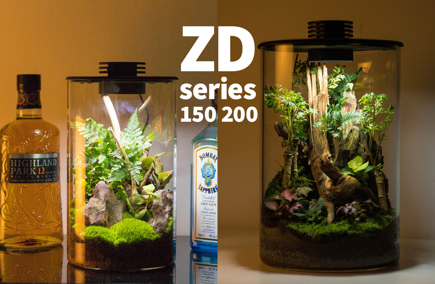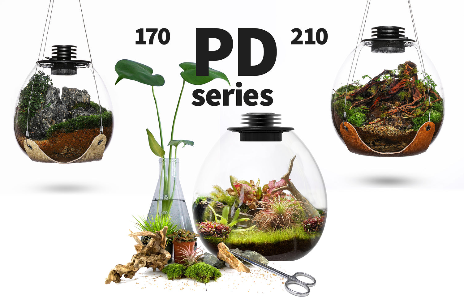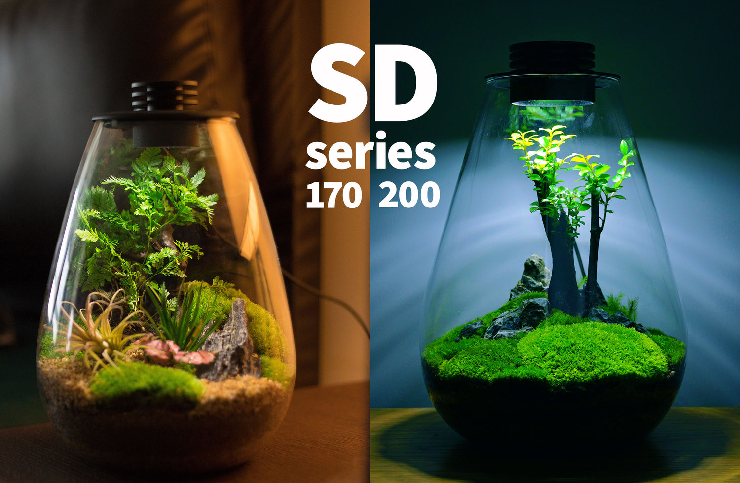 テラリウムをもっと自由に。照明と一体型のテラリウム容器なら、あなたの作品がもっと映える。