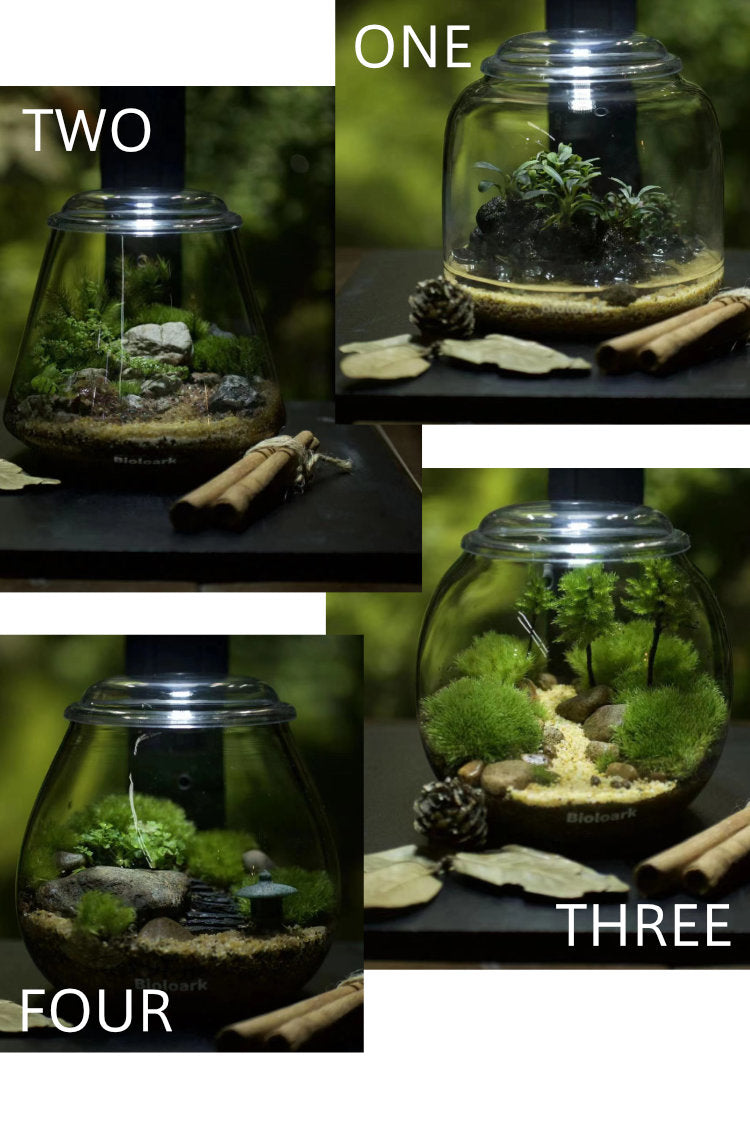 テラリウムで良く使われる人気の容器のシルエットを研究し、テラリウムで好まれるちょうど良いサイズの容器を Bioloark バイロアークが専用設計。4つのタイプのテラリウム専用容器を作りました。