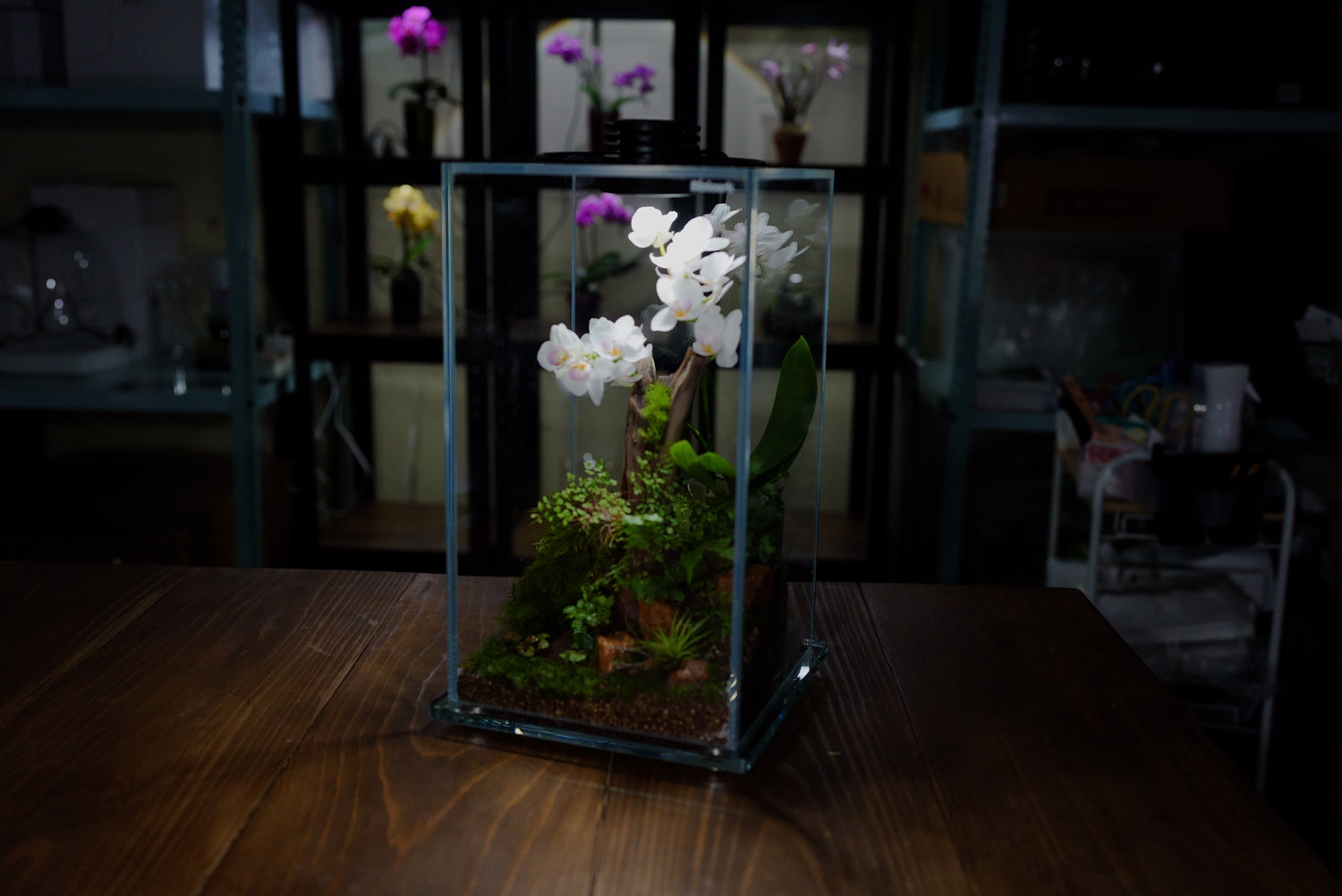蘭を使ったテラリウムで、「テラリウムの美しさを再定義する」というテーマが明確になりました。